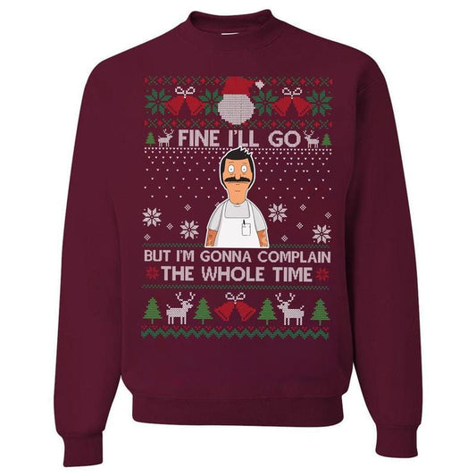 Fine I'll Go But I'm Gonna Complain The Whole Time Ugly Christmas Sweatshirt, Vintage Bob Belcher Shirt, Bob's Burgers Fan, Merry Christmas Hoodie