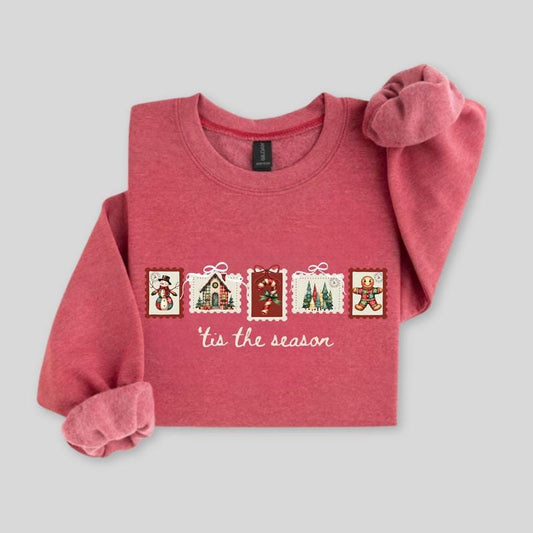 Retro Winter Stamp Sweatshirt, Patchwork Christmas Stamps Sweater, Coquette Christmas Sweatshirt, Winter Stamp Sweatshirt