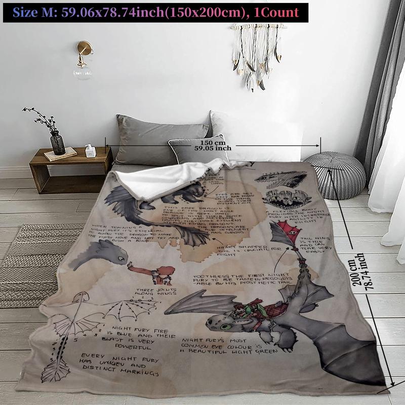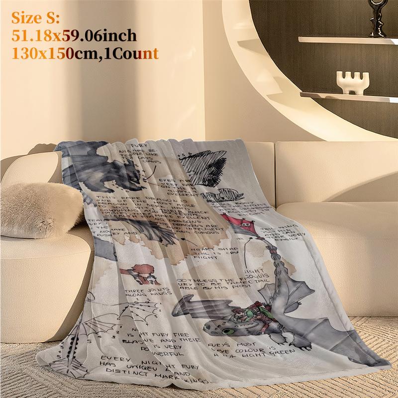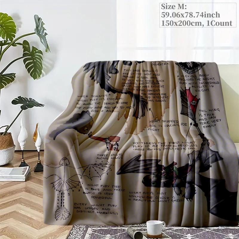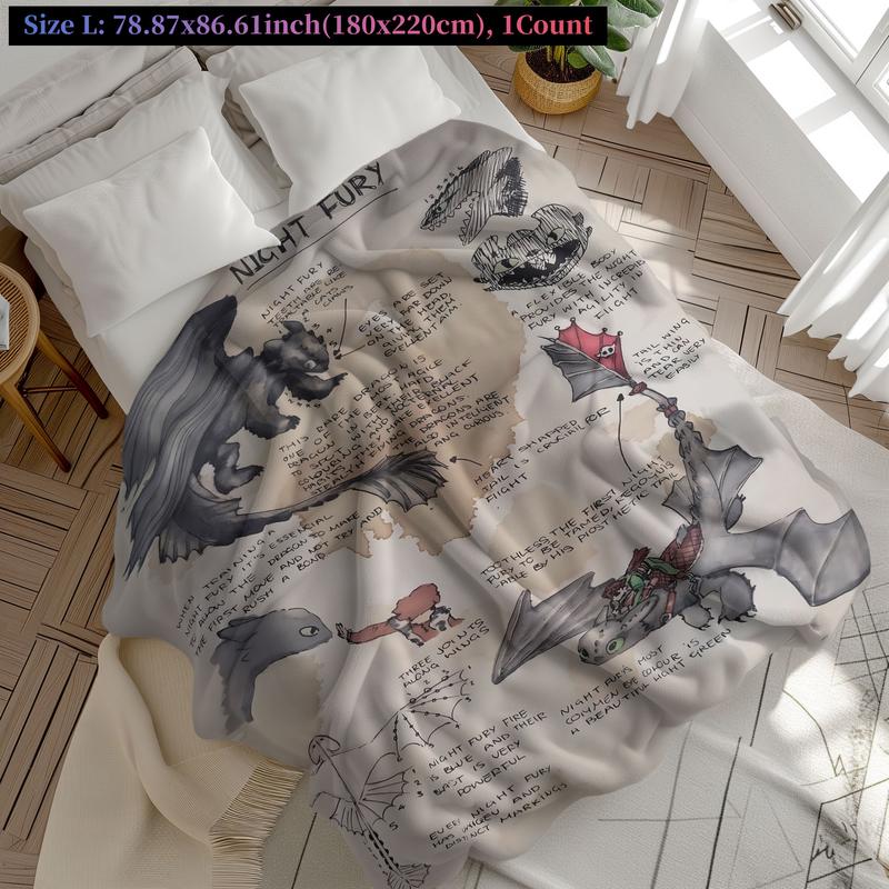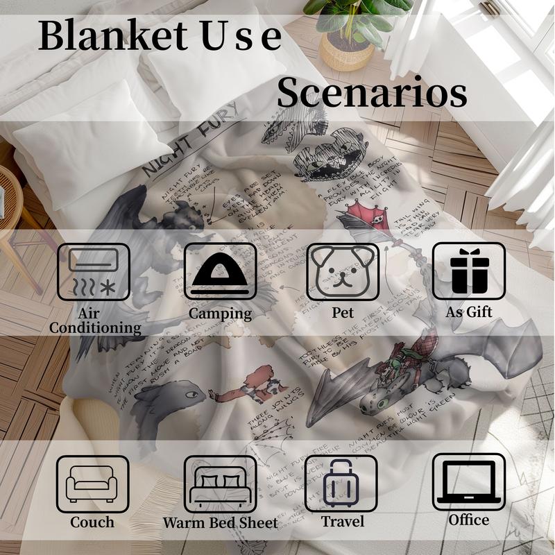 How to Train Your Dragon Sketch Throw Blanket, Night Fury Art Design Fleece Blanket, Slogan Print Blanket, Cozy Blanket for Fantasy Lovers, Soft & Warm